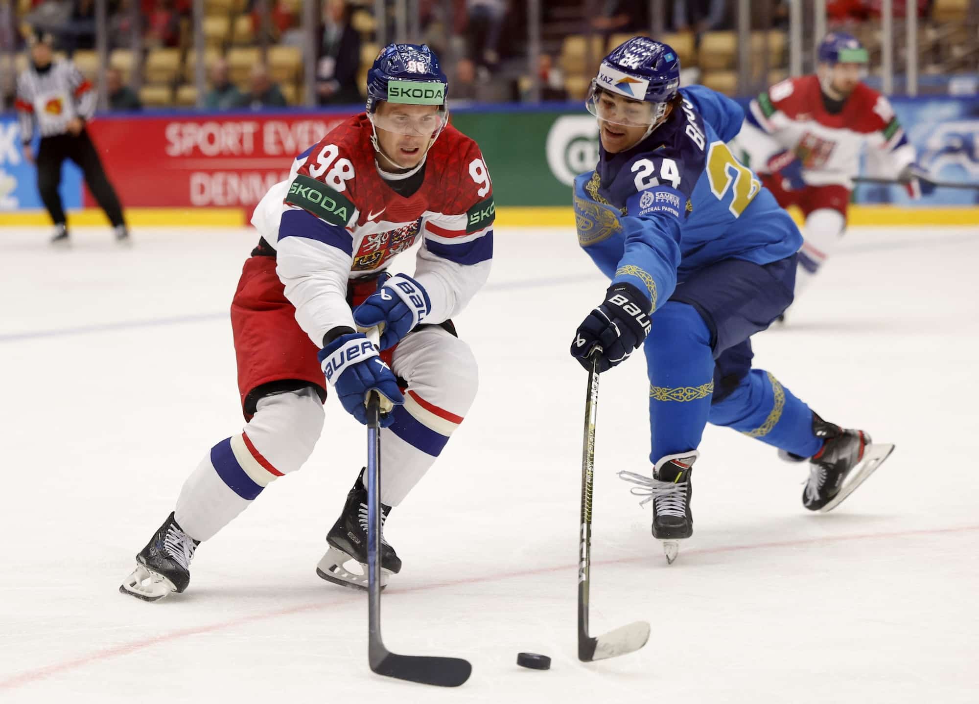 Zápas začal pomaleji, ale od druhé třetiny se Češi dostali do tempa. Kazachstán postupně přestával stíhat a český tým trestal každou chybu. Stránský nejprve otevřel skóre a později přidal i druhý gól. Po něm se prosadil Flek, následně Stránský a poté už nastoupil do akce kapitán Červenka.