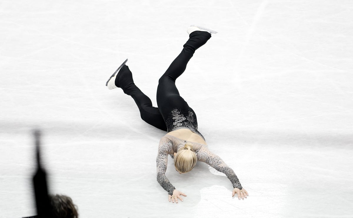 Diváci při včerejší volné jízdě krasobruslařských dvojic na mistrovství světa v Montpellieru trnuli. Naskytl se jim totiž nepříjemný pohled na Američanku Ashley Cainová-Gribbleová, která spadla bradou na led a musela být na lůžku odvezena z ledu. Místo stupňů vítězů musela na pozorování do nemocnice.